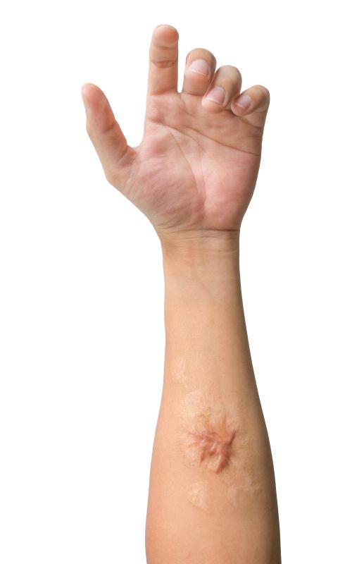Keloids are most commonly found at the site of skin trauma (e.g., acne, burns, chicken pox, wounds, insect bites, piercings, surgery, tattoos, immunizations), but they can also form on their own. The degree of the wound does not affect whether or not a keloid will develop; even a little skin abrasion can cause keloid formation.