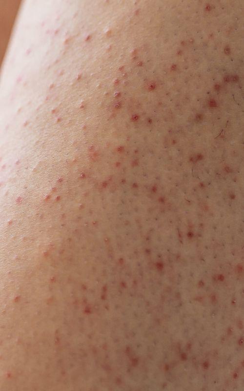 Itchy or dry skin, particularly on the buttocks, upper arms, or legs (butt).